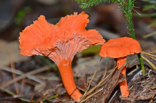 Eine essbare Sorte, die vor allem in den Wäldern Südosteuropas selten vorkommt. Die Sorte wächst nur auf sauren Böden neben Laubbäumen. Die Oberhaut fühlt sich leicht samtig an, ähnelt Filz und hat einen leuchtend orangefarbenen Farbton. Die Form der Kappe ist zunächst flach, wird aber schließlich trichterförmig mit lockigen Kanten.