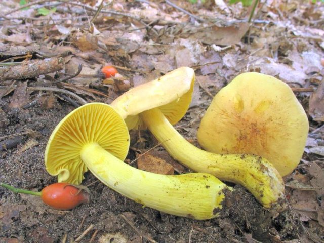 - Rudern schwefelgelb... Diese Art zeichnet sich durch eine giftige gelbe Farbe der Kappe und der Beine aus. Die Oberfläche des Fruchtkörpers hat eine samtige Textur. Das Bein ist dünn. Das Fruchtfleisch ist auch schwefelfarben mit einem stechenden Acetylengeruch.