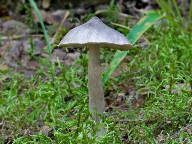 - Die Reihe ist spitz... Die Kappe hat eine charakteristische konische Form mit einem spitzen Tuberkel in der Mitte. Die Haut ist trocken, dunkelgrau, der Rand ist rissig. Der Stiel ist hellgrau, dünn, leicht gebogen.