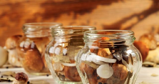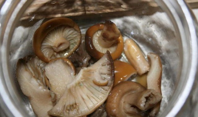 Die in Ryadovka eingelegten Pilze sind für den Winter in sterilen Gläsern verschlossen.
