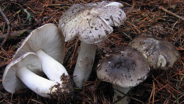 - Reihe grau (Tricholoma portentosum) ist ein beliebter Speisepilz. Der Hut ist hellgrau und fleischig (bis zu 12 cm). Während die Reihe jung ist, hat sie ein kegelförmiges Aussehen und für die älteren ist sie ungleichmäßig flach. Die Mitte der Kappe ist dunkler als die Kanten. Das Bein ist grau oder weißlich. Das Fleisch auf dem Schnitt ist leicht gelblich. Das Aroma ist schwach, der Geschmack ist nicht stark mehlig.