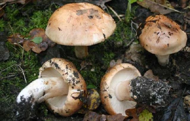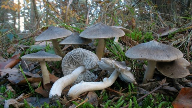 - Reihe erdig grau... Ein wachsender Pilz mit einer kegelförmigen Kappe (bis zu 9 cm) nimmt eine flache Form mit einem Tuberkel in der Mitte an. Sie werden oft Mäuse genannt. Die Haut ist seidenmausbraun oder ziegelfarben. Das schneeweiße Bein (bis zu 9 cm hoch) am alternden Pilz wird am Boden hohl und gelb. Elastisches Fruchtfleisch hat fast keinen Geschmack, aber einen unauffälligen pudrigen Geruch.