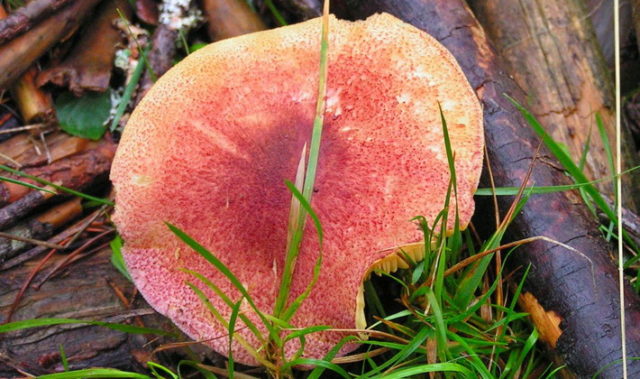 - Die Reihe ist seifig... Die Kaffee- und Milchaufstrichkappe hat eine dunkle Mitte und einen helleren, gleichmäßigen Rand. Das Bein, das mit einer faserigen Struktur der Oberfläche gebogen ist, ist einen Ton heller gefärbt als die Kappe. Der Fruchtfleischschnitt wird rot und verströmt einen starken chemischen Seifengeruch mit fruchtigen Noten.