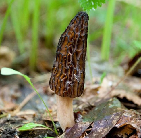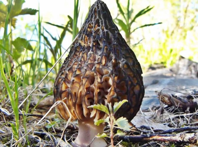 Essbare Morchel oder echte ist die beliebteste Sorte. Sein Fruchtkörper ist groß, fleischig, der innere Teil ist hohl. In der Höhe erreicht ein solcher Pilz 20 cm, während er eine kleine Masse hat.