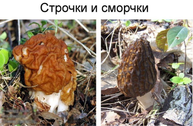 Die Linien und Morcheln haben deutliche Unterschiede. Die ersteren haben eine formlose Kappe, die den Windungen des Gehirns ähnelt. Morcheln haben eine kegelförmige, längliche Kappe. Die Linien drücken den Boden nicht auseinander, sondern wachsen durch ihn hindurch, sodass ihr Bein von Erde, kleinen Ästen und anderen Ablagerungen befreit werden muss.
