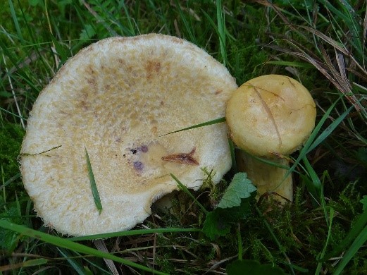 Farbabweichungen von hellbraun bis gelb. Auf der Kappe befinden sich möglicherweise subtile konzentrische Kreise.