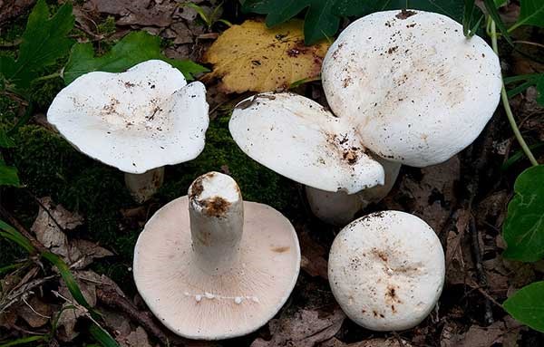- Pfeffermilch... Es hat eine weiße Kappe mit einem Durchmesser von 5 bis 20 cm sowie ein glattes und weites Bein von bis zu 8 cm Höhe. Wie der glasige Pilz hat es einen brennenden, scharfen Saft, der abgesondert wird und zu bedingt essbaren Pilzen gehört.
