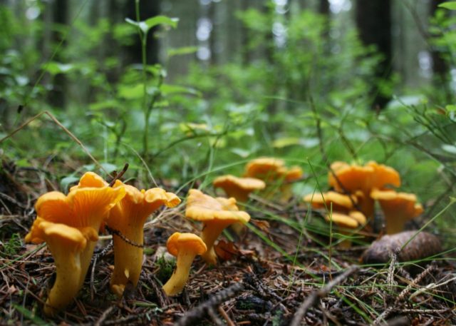 - Pfifferlinge - Pilze sind äußerlich ähnlich, jedoch nur aus der Ferne und bei schlechten Sichtverhältnissen. Aus der Nähe werden selbst unerfahrene Pilzsammler diese völlig unterschiedlichen Arten nicht verwirren können, da Pfifferlinge eine dichte Struktur haben, in einer satten gelben Farbe gestrichen sind, ein angenehmes Aroma haben und in großen Familien wachsen. Die Sporenseite ist eher gefaltet als glatt. Dieser Vertreter ist essbar und eignet sich perfekt zum Kochen von gebratenen und gedünsteten Gerichten.