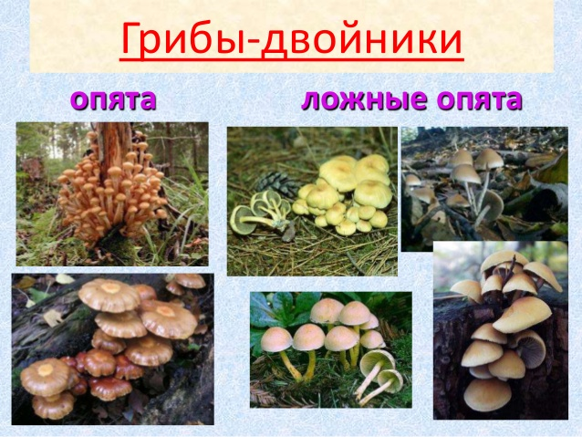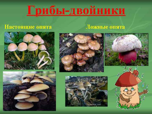 Aufgrund der Ähnlichkeit der äußeren Zeichen - Wachstum in großen Gruppen, konvexe Lamellenkappen, dünne und lange Beine, innen hohl - ist es für einen Nichtfachmann auf den ersten Blick schwierig festzustellen, welche Pilze sich vor ihm befinden. Falsche Pilze und "normal" wachsen sogar in der Nachbarschaft auf demselben Baumstumpf.