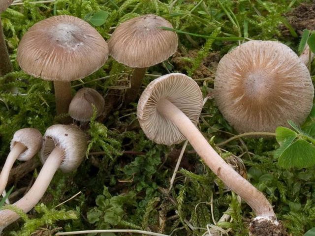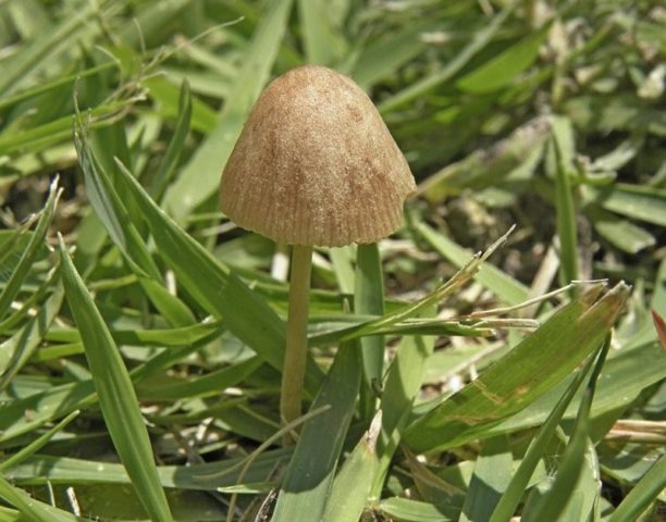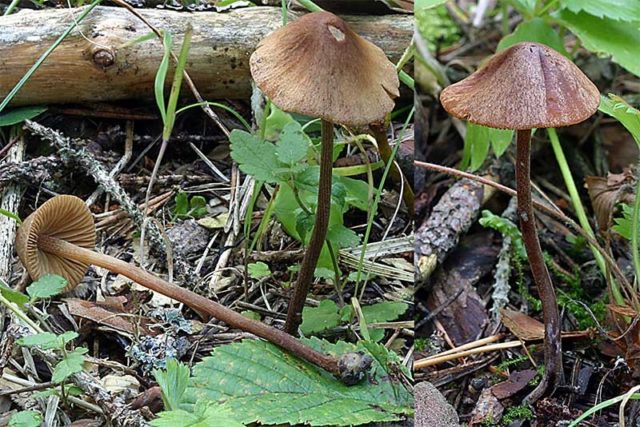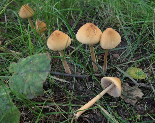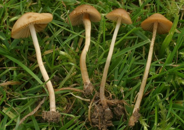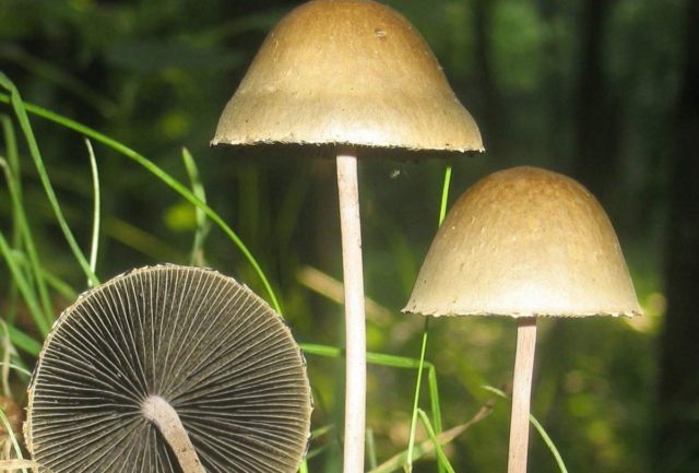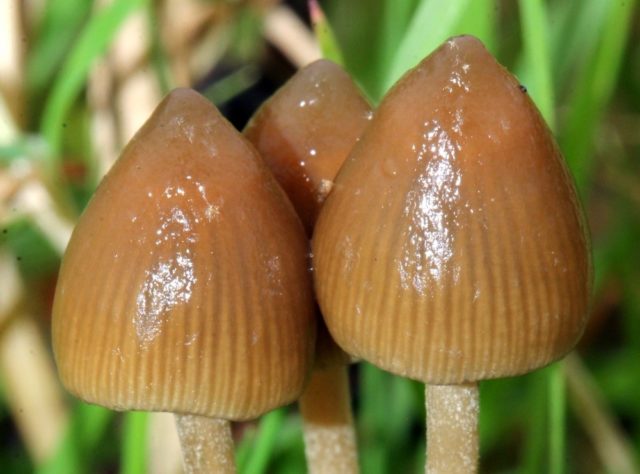 - Psilocybe... Giftig. Die Kappe hat eine spitze konische Form mit nach innen gerundeten Kanten und anhaftenden absteigenden Platten, die schleimig wie Lack sind. Das Bein ist fast weiß.