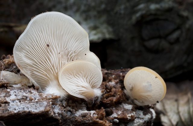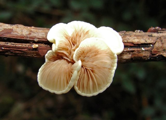 Das flüchtige Crepidot ähnelt auch dem essbaren Austernpilz oder Common.Letzteres zeichnet sich durch eine ausgeprägte längliche Befestigung am Untergrund, eine gleichmäßig abgerundete Kappe und größere Größen von 5 bis 20 cm aus.