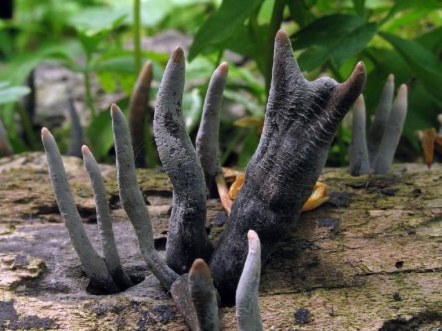 Aufgrund der langgestreckten Fruchtkörper, die zu Beginn des Wachstums einer grauen Farbe mehrere Stücke zusammen gesammelt haben, hat der Xilaria-Pilz den populären Namen "Finger des Toten" erhalten. Am Ende des Sommers werden sie zu einem völlig unvorstellbaren dunklen Farbton, trocknen ein wenig aus und werden aus der Ferne wie die Exkremente eines mittelgroßen Tieres.