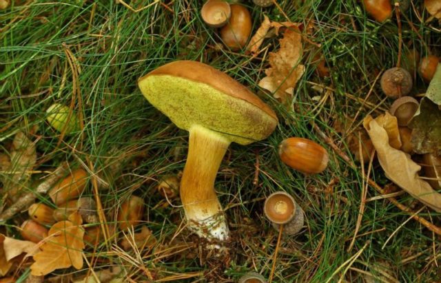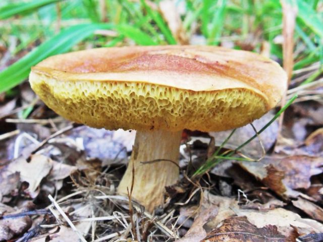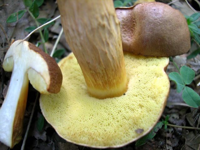 - Die untere Ebene der Kappe ist röhrenförmig, gelb, wenn sie erscheint, wird mit zunehmendem Alter grünlich.