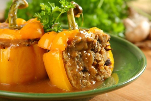 Zusätzlich zur klassischen Version mit Reis und Hackfleisch können Sie Buchweizen und Pilze zum Füllen von Paprika verwenden: