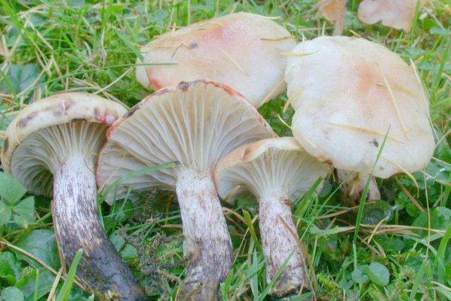 - Die Schleimhaut ist fleckig: Der Bruch der Pulpa ist rot gefärbt, auf der Oberfläche des Pilzes befinden sich dunkle Flecken.