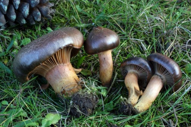 - Ein weiteres essbares Doppel ist lila Moos. Es zeichnet sich durch orange-braunes Fleisch und dunkelviolette Platten aus.