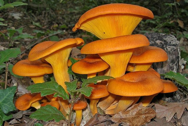 - Omphalot von Oliven - Ein giftiger Zwilling, dessen Platten sich sehr oft befinden, und ein Überschuss an Phosphor bewirken das Leuchten von Vertretern dieser Art im Dunkeln.