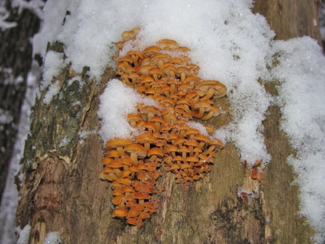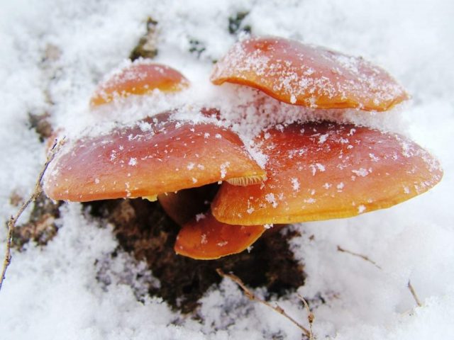 - Winter oder im lateinischen Alphabet Flammulinavelutipes. Kuban ist reich an Winterarten, die Pilzsammler den ganzen Februar über sammeln. Der Geschmack und Geruch von Winterpilzen hängt davon ab, wo sie wachsen. Pilze, die auf Laubbäumen wachsen, haben einen feineren Geschmack und ein feineres Aroma. Nadelvegetation verleiht einen leicht bitteren harzigen Nachgeschmack und einen entsprechenden Geruch. Sie vertragen Frost perfekt, zu diesem Zeitpunkt stoppen sie einfach das Wachstum.