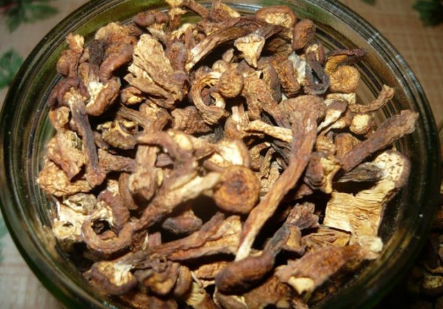 Honigpilze eignen sich zum Trocknen für den Winter, müssen aber gleichzeitig nicht gewaschen und gekocht werden. Es reicht aus, um die Trümmer gut zu reinigen. Ganze junge Exemplare werden entnommen, in Gegenwart von Wurmlöchern werden sie verworfen. Sie können in der Sonne oder im Ofen trocknen. Normalerweise sind sie an einer Schnur aufgereiht. Die optimale Ofentemperatur zum Trocknen beträgt 50 ° C.