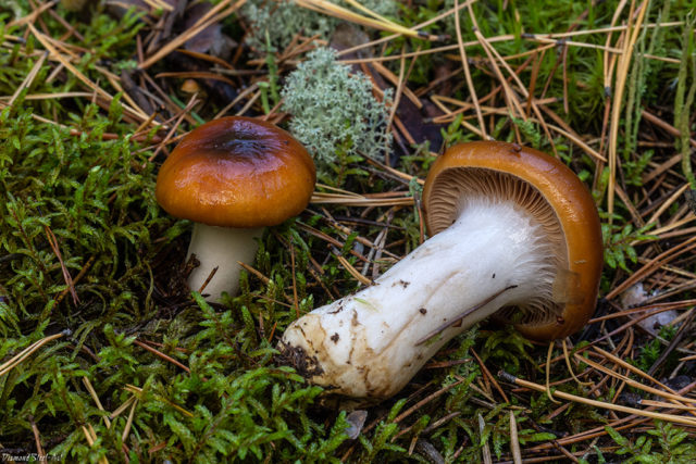 - Schleimspinnennetz, die in jungen Jahren eine glockenförmige Kappe hat, die schließlich flach wird. Oberflächenfarbe - braun oder braun, mit einem gelblichen Farbton. Das Bein ist weiß. Der gesamte Fruchtkörper ist mit Schleim bedeckt, er kann sogar an den Rändern an der Kappe hängen. Der Pilz zeichnet sich durch die Abwesenheit von Geruch und Geschmack aus und wächst in Nadel- und Mischwäldern. Die Art ist bedingt essbar.