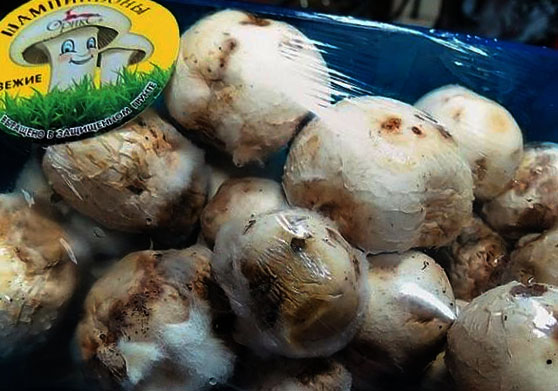 Beim Kauf von frischen jungen Pilzen sieht der Verbraucher vollkommen ganze weiße Körper. Bleibt das Produkt längere Zeit auf der Theke, wird unter der Kappe eine schwarze sporentragende Schicht sichtbar. Ein ähnliches Bild kann beobachtet werden, wenn das gekaufte Produkt zu Hause im Kühlschrank lag.