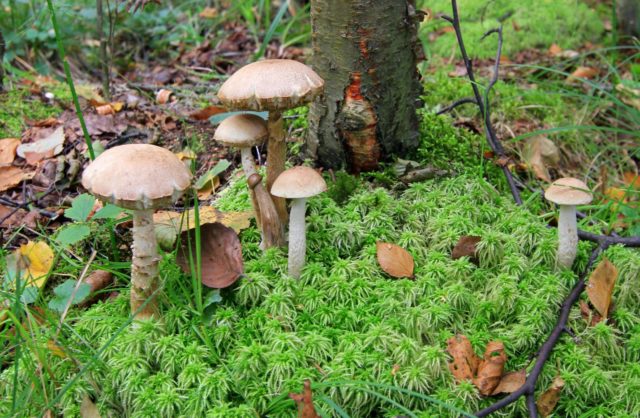 Manchmal berichten Pilzsammler von ungewöhnlichen Funden: einer Familie von Sumpfboletus auf einem noch stehenden Stamm einer faulen Birke.