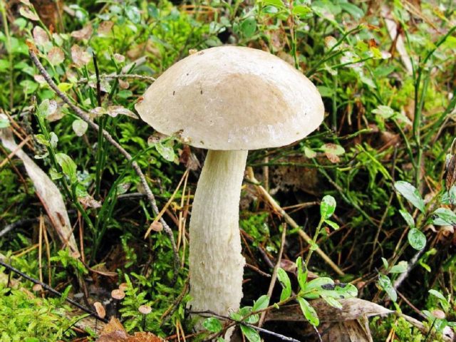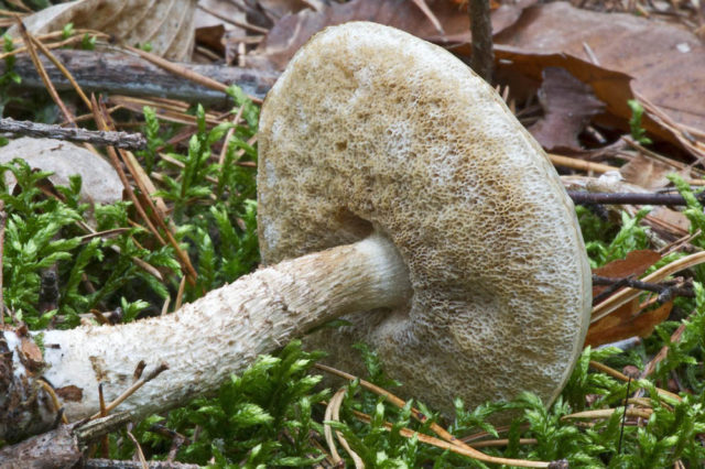 - Aus der Ferne wird die Farbe des Sumpfboletusbeins als weißgrau wahrgenommen.