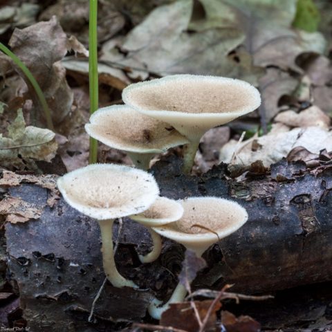 Dieses Exemplar ist ein kleiner Fruchtkörper in Form einer Kappe und eines Beins. Eine Besonderheit ist, dass die Oberfläche mit feinen Haaren und Schuppen bedeckt ist. Sporenpulver von cremefarbener Farbe.