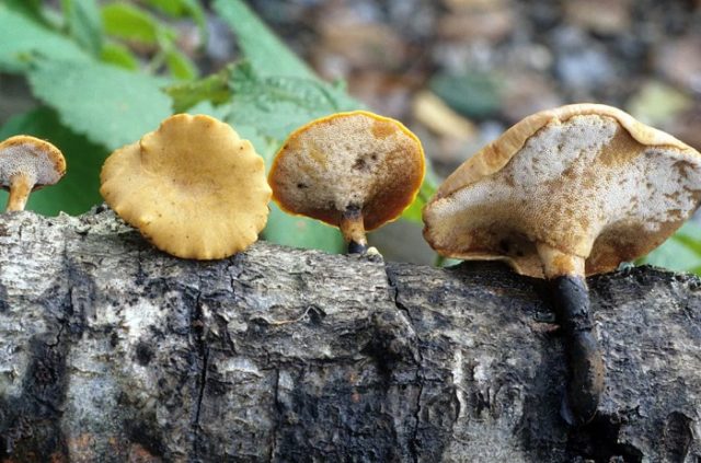 Polyporous Polypore, auch bekannt als Polyporus Pit, ist ein Vertreter der Polyporovye-Familie, der Gattung Sawfoot. Zusätzlich zu diesen Namen hat es andere: Polyporus oder Sarg-förmiger Zunderpilz, dekorierter Polyporus, vasenartiger Zunderpilz, gewölbter Zunderpilz.
