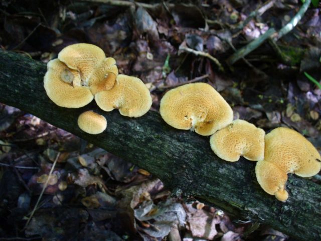 - Zelluläre Polypore - bezieht sich auf ungenießbare Pilze. Der Fruchtkörper hat eine fächerförmige, ovale oder halbkreisförmige Form. Eine Besonderheit ist ein kaum wahrnehmbares Bein, da es nicht länger als 1 cm ist.