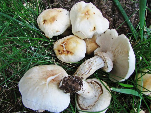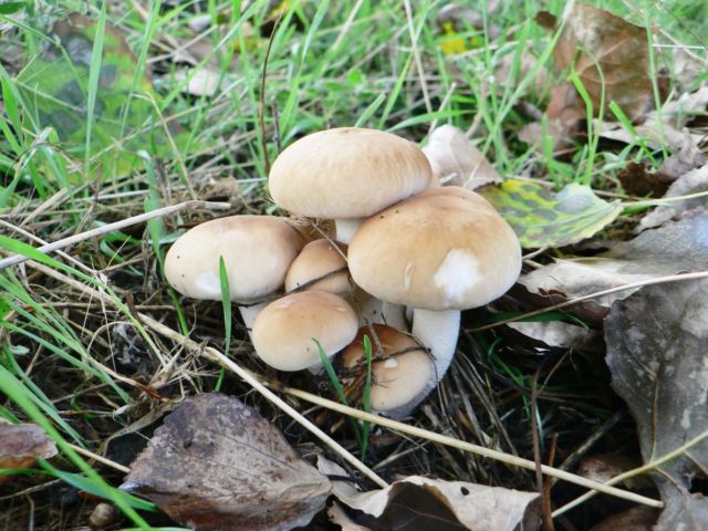 Pilze der Familie Strophariev zeichnen sich durch eine besondere Färbung der Sporen aus: Sie haben violette oder lila Töne. Die zylindrische Wühlmaus (Latin Agrocybe cylindracea) zeichnet sich durch grau-braune Tabaksporen aus, die sich zwischen den Platten befinden.