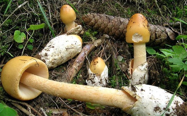 Ein Merkmal dieses Pilzes ist das Vorhandensein einer sacculären Volva, aus der der Stamm wächst. In einigen Fällen kann es sich im Boden befinden, aber häufiger wird es über seiner Oberfläche beobachtet.