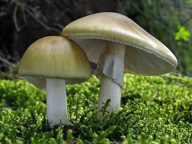 Mit zunehmendem Alter werden häufige weiße Teller cremig oder gelblich und ragen an den Rändern der Kappe hervor, weshalb sie gerippt wird. Eine kleine Menge Volva kann auf der Oberfläche verbleiben.