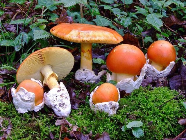 Ein weiteres Doppel des Safranschwimmers gilt als Caesar (königlicher) Pilz oder Caesars Fliegenpilz, der als äußerst wertvoller und schmackhafter Gourmet-Vertreter des Königreichs gilt. Amanita Caesar ist größer, hat ein stärkeres Fruchtfleisch und Noten von Haselnüssen im Geruch. Der Hut kann Schattierungen von Orange bis Feuerrot haben, der Stiel und die Teller sind ebenfalls orange gefärbt. Eine Besonderheit von Caesars Fliegenpilz ist das Vorhandensein eines Rings am Bein, den Schwimmer nicht haben.