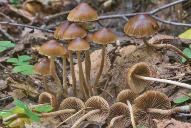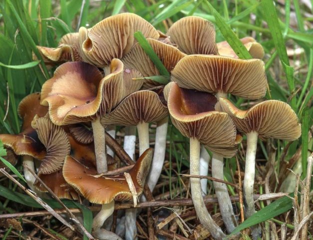- Psilocybe tschechisch ist ein halluzinogener Pilz, der in Nadel-, Misch- oder Laubwäldern wächst. Die Oberfläche der Kappe ist bräunlich gefärbt, mit Schleim bedeckt und wird auf dem Schnitt blau. Das Bein ist dünn, faserig, wird mit zunehmendem Alter röhrenförmig, wellig mit einem bläulichen Schimmer. Der Unterschied zum blauen Psilocybe ist die glockenförmige Kappe.