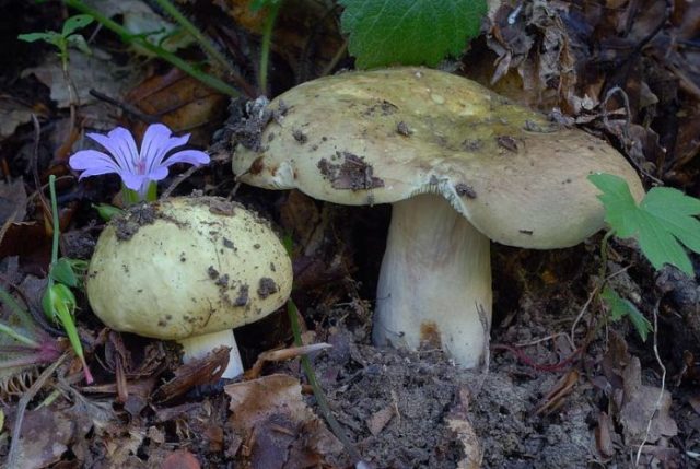 - Olive russula... Der Pilz ist groß. Der obere Teil hat einen Durchmesser von 10-30 cm. Thomas kann kugelförmig oder flach sein. Die Oberfläche ist trocken, eben und glatt. Das Bein wird bis zu 18 cm hoch. Zylinderform, weiße Farbe, Dicke 2-6 cm.