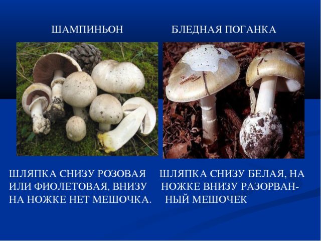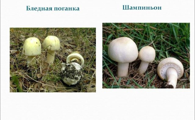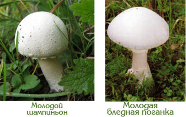 Die Ähnlichkeiten und Unterschiede zwischen hellem Giftpilz und Champignon sollten genauer untersucht werden. Auf diese Weise können Sie genau herausfinden, welche Merkmale während der Sammlung Sie genau betrachten müssen, um einen Fruchtkörper von einem anderen zu unterscheiden.