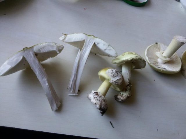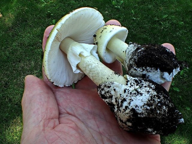 Dies lohnt sich jedoch nicht. Der blasse Giftpilz streut seine Sporen um sich herum und sie sind auch hochgiftig. Wenn Sporen auf die Kappen benachbarter Fruchtkörper fallen, werden sie dementsprechend tödlich.Essbare Fruchtkörper, die in der Nähe von giftigen wachsen, es ist besser, sie nicht zu berühren und zu umgehen.
