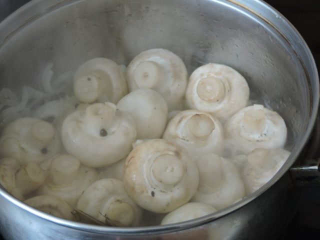 - Zunächst werden die Pilze unter Zugabe von Salz nicht länger als 15 Minuten in Wasser gehalten.