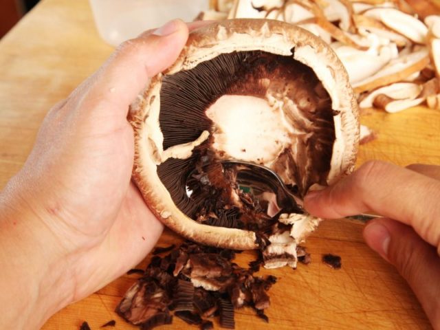 Ob die Teller an der Unterseite der Kappe gereinigt werden sollen oder nicht, hängt weitgehend vom Alter des Pilzes ab. In alten Fruchtkörpern werden die Teller oft hell- oder dunkelbraun, und in solchen Fällen werden die Pilze von den Tellern gereinigt.