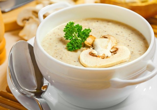 Champignons für eine stillende Mutter können als Teil eines anderen gesunden und leckeren Gerichts verwendet werden - Suppe mit Champignons, Gemüse und Kräutern. Sie machen es so: