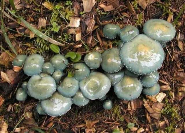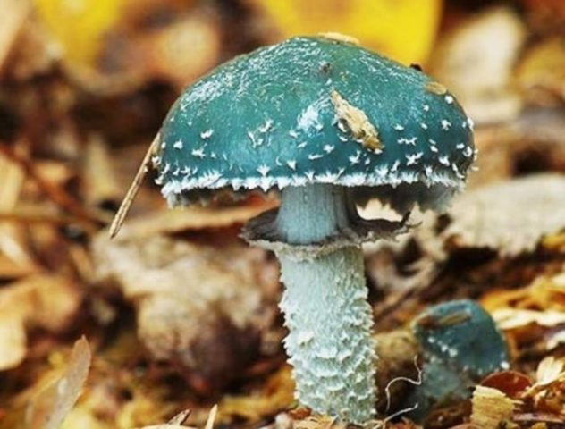 Stropharia himmelblau ist ein wunderschöner Vertreter der Familie Stropharia. Da die Art ein helles, ungewöhnliches Aussehen hat, ist es sehr schwierig, sie mit anderen Arten des Pilzreichs zu verwechseln.