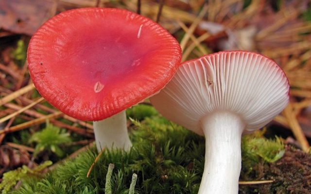 - Brennende Russula - diese Art gehört zu bedingt essbaren Pilzen. Sie haben eine hellrote Kappe, zerbrechliches schneeweißes Fruchtfleisch, ein zartes fruchtiges Aroma und einen unangenehmen Geschmack. Es ist besser, diese Pilze während der Ernte nicht einzunehmen, da das Fruchtfleisch Muskarin enthält, das zu Lebensmittelvergiftungen führen kann.