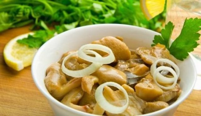 250 ml Wasser in einen Topf geben, salzen und zum Kochen bringen. Pilze werden in eine heiße Salzlösung gegeben, Gewürze werden hinzugefügt und etwa 15 Minuten lang gekocht. Die vorbereitete Konservierung wird in Gläsern ausgelegt, mit Salzlösung gegossen und für einen Monat in einen kühlen Raum gebracht.