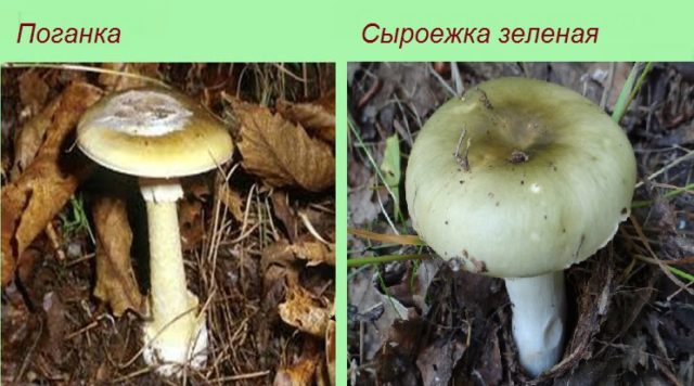 Die größte Gefahr beim Pilzen besteht darin, ein gefährliches Exemplar in den Korb zu bringen, das Ihre Gesundheit schädigen kann. Daher ist es wichtig, die Pilzkarte der Wohnregion zu studieren. Die grüne Russula hat keine giftigen Gegenstücke, das heißt, es gibt keine ähnlichen Sorten wie zwei Wassertropfen.
