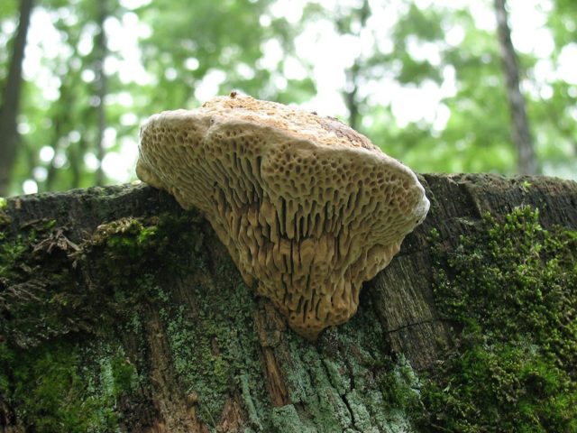 Die bucklige Polypore gehört zur Familie der Polyporovye. Unter Mykologen sind die folgenden synonymen Namen für Holzpilz bekannt: Trametes gibbosa, Merulius oder Polyporus, Gibbosus, Daedalea gibbosa oder Virescens, Lenzites oder Pseudotrametes, Gibbosa.