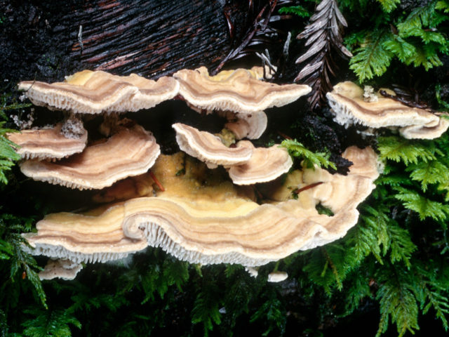 Aus der Ferne können Pilze aufgrund von Algen grün erscheinen