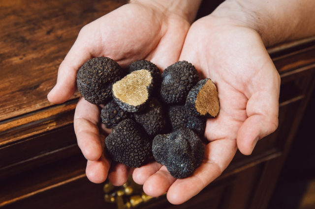 Der essbare Krimtrüffel oder russisches Schwarz ähnelt ein bisschen dem berühmten Perigordschwarz, das auf dem Foto gezeigt wird: