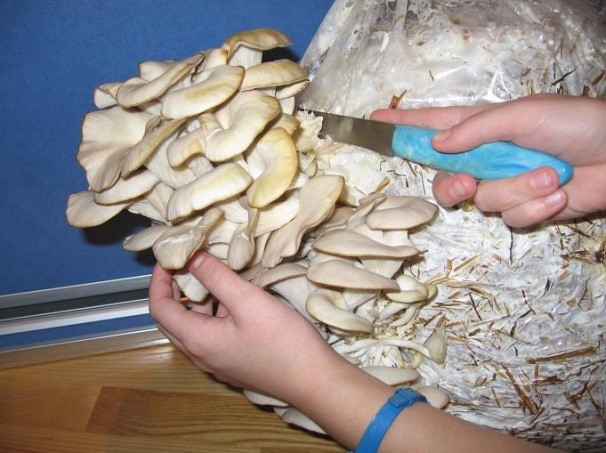 Um das Myzel nicht zu beschädigen, ist es besser, die Ernte mit einem Messer zu schneiden.