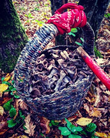 Trotz der Tatsache, dass diese Art in überfüllten Gruppen wächst, ist es nicht leicht, sie in abgefallenen Blättern zu finden, da sie aufgrund ihrer Farbe gut getarnt ist. Wenn es Ihnen jedoch gelingt, mindestens ein paar Exemplare zu finden, sollten Sie sich genauer umsehen, da andere Vertreter der Kolonie in der Nähe sein müssen. Nachdem Sie die Pilzstelle des hornförmigen Trichters gefunden haben, können Sie innerhalb von 10-15 Minuten einen vollen Korb sammeln.